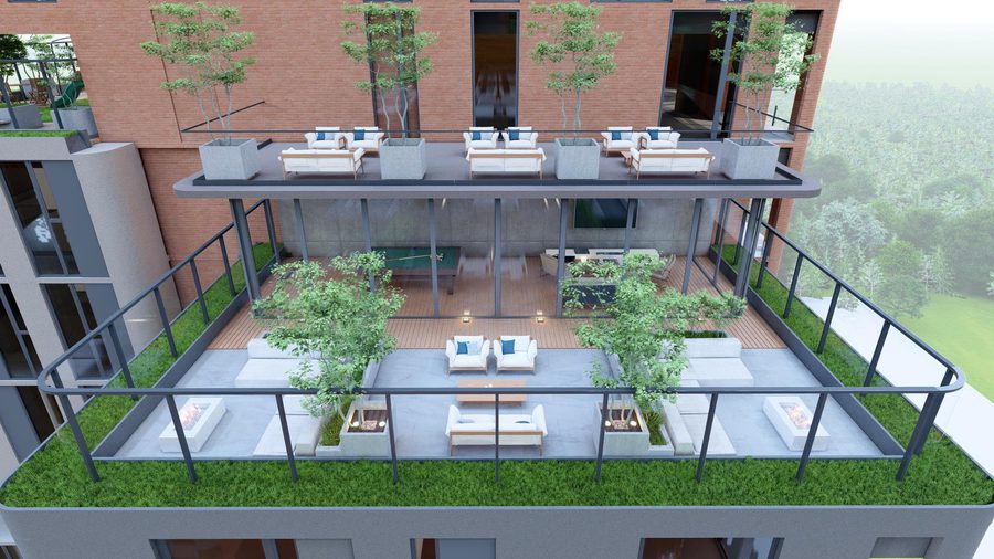Entre sus amenidades se incluyen un gimnasio, coworking, lounge social, sala de lectura, solarium, cafetería, comercios, lounge con fire pits, área de juegos infantiles y seguridad 24/7 con cámaras y sistema automatizado de ingreso . Además, dispone de 31 parqueos de visita, planta eléctrica de emergencia, pozo de agua y planta de tratamiento