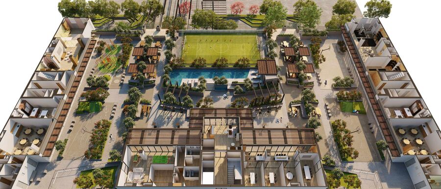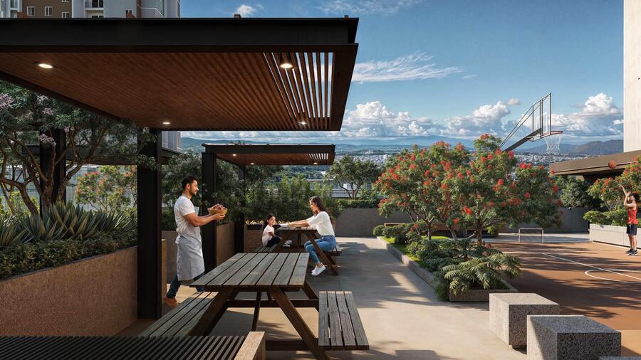 Además, los residentes disfrutan de más de 1,200 m² de amenidades, incluyendo áreas de coworking, espacios abiertos y acceso directo al Centro Comercial Pradera en Vistares, que ofrece una variedad de servicios y entretenimiento.