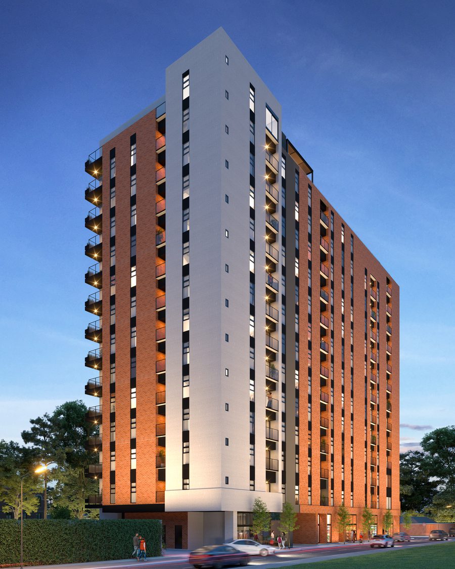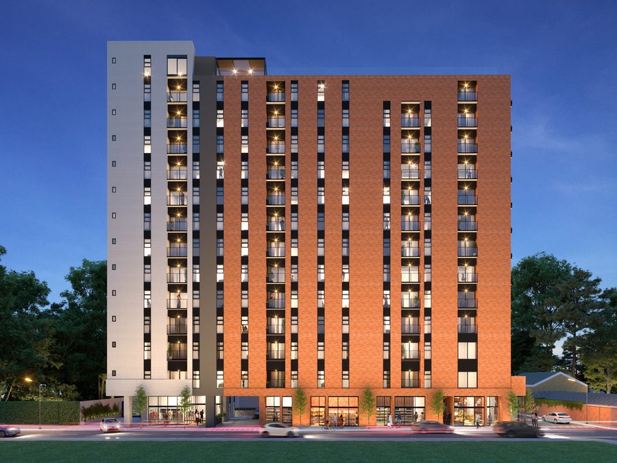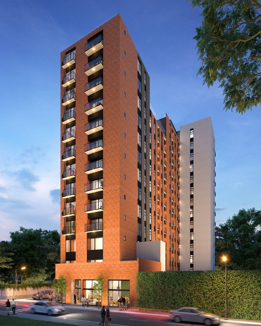 El edificio cuenta con 12 niveles de apartamentos y un nivel comercial, ofreciendo unidades de 1 y 2 habitaciones. Cada apartamento está equipado con 1 o 2 parqueos y bodega, y cuenta con acabados de alta calidad.