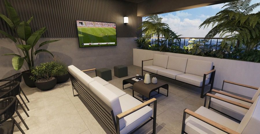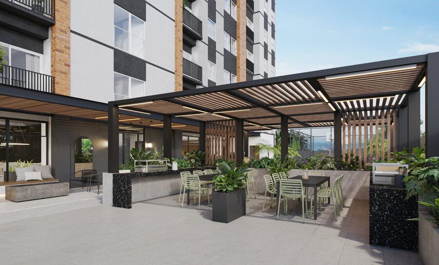 Entre sus más de 10 amenidades se incluyen gimnasio, coworking, salón social, rooftop lounge, cancha polideportiva, juegos para niños, pet park y BBQ lounge, diseñadas para ofrecer una experiencia de vida urbana cómoda y conectada .